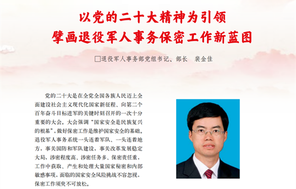 裴金佳:以黨的二十大精神為引領擘畫退役軍人事務保密工作新藍圖